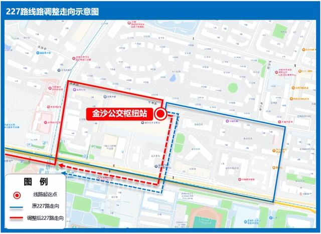 227路 起訖點(diǎn):侯家公交站——金沙公交樞紐站 線路走向:侯家公交站發(fā)出,侯家公交站至謝家祠站行駛線路及站點(diǎn)不變,調(diào)整線路經(jīng)青羊大道、雙錦路后到達(dá)金沙公交樞紐站(終點(diǎn)站) (返程)調(diào)整線路從金沙公交公交樞紐站一樓2站臺(tái)發(fā)出,經(jīng)錦屏南路、清江中路、蘇坡東路、蜀金路后回原線路行駛至侯家公交站(終點(diǎn)站)。