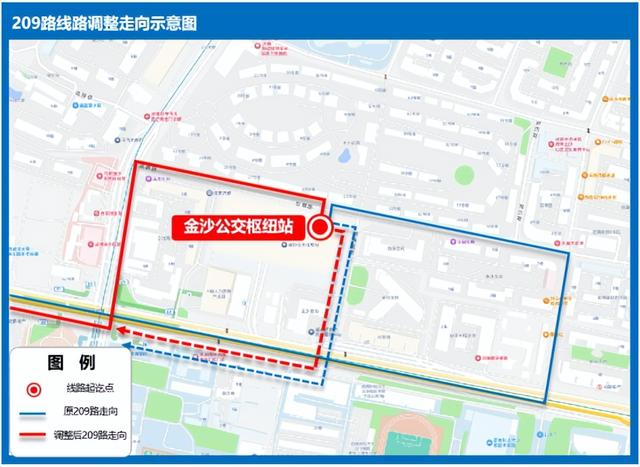 209路 起訖點(diǎn):侯家公交站——金沙公交樞紐站 線路走向:侯家公交站發(fā)出,侯家公交站至金鳳路南站行駛線路及站點(diǎn)不變,調(diào)整線路經(jīng)清江西路、青羊大道、雙錦路后到達(dá)金沙公交樞紐站(終點(diǎn)站) ?。ǚ党蹋┱{(diào)整線路從金沙公交公交樞紐站一樓2站臺(tái)發(fā)出,經(jīng)錦屏南路、清江西路、金鳳路后回原線路行駛至侯家公交站(終點(diǎn)站)。
