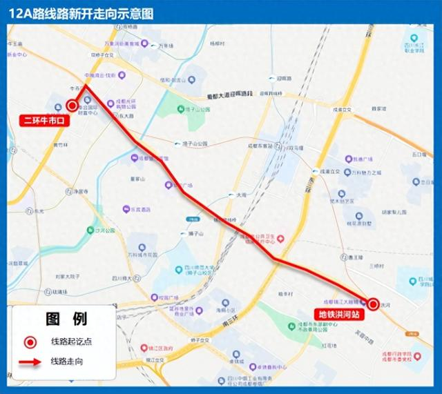 具體方案如下: 12A路 起訖點(diǎn):地鐵洪河站——二環(huán)牛市口 線路走向:地鐵洪河站發(fā)出,交路經(jīng)驛都大道、靜明路、上沙河鋪街、下沙河鋪街、東大街東大路段、二環(huán)路東四段后到達(dá)二環(huán)牛市口(終點(diǎn)站);往返一致 站點(diǎn)設(shè)置:地鐵洪河站、地鐵東大路站、二環(huán)牛市口。