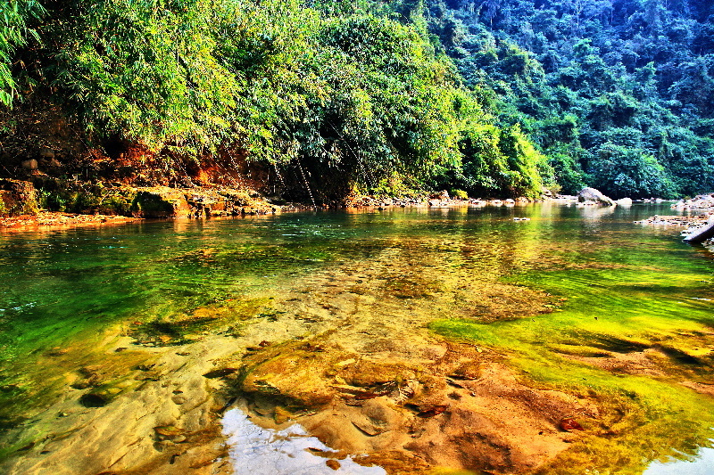 走進(jìn)其中,茂密的原始森林萬木崢嶸,蔥蘢蒼翠的雨林間,濃郁的綠意暈染開來,穿行而過的河流,柔美靈動,勾勒出一幅精美的山水畫卷。