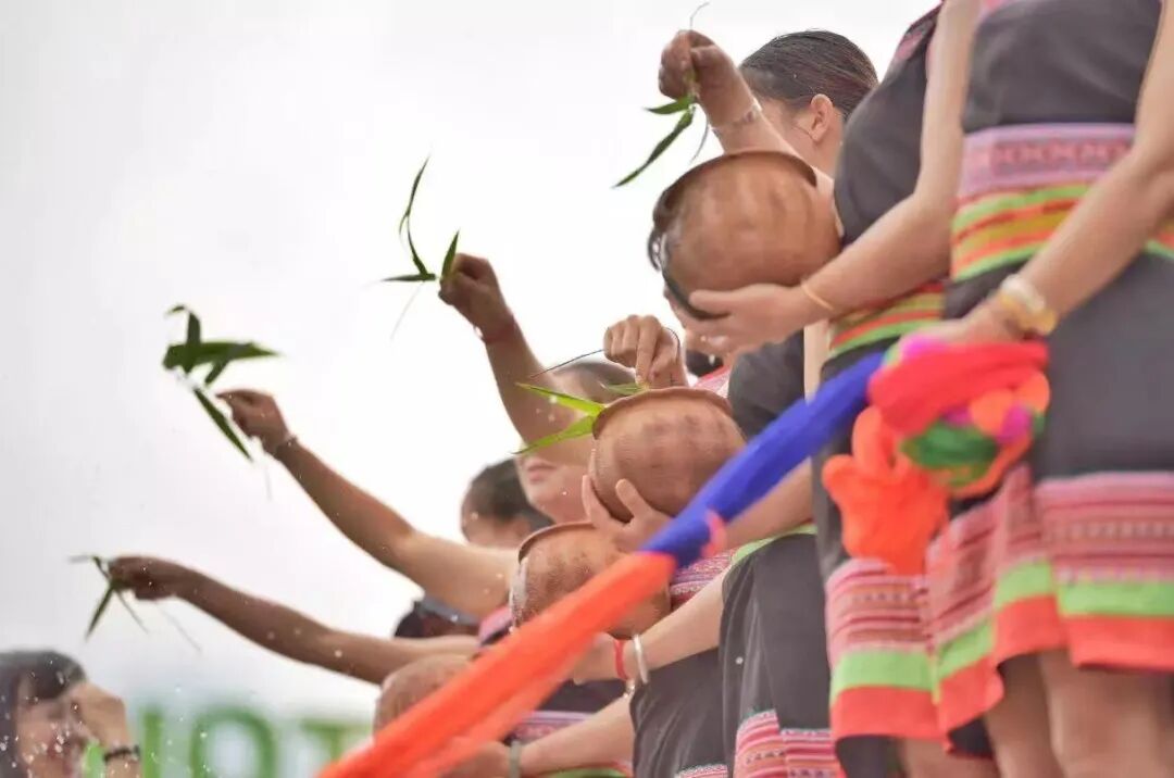 花腰傣雅摩誦經(jīng)祈福,花腰傣小卜少潑灑取自哀牢山深山的吉祥水,祝愿祖國昌盛、山河無恙、人間皆安!