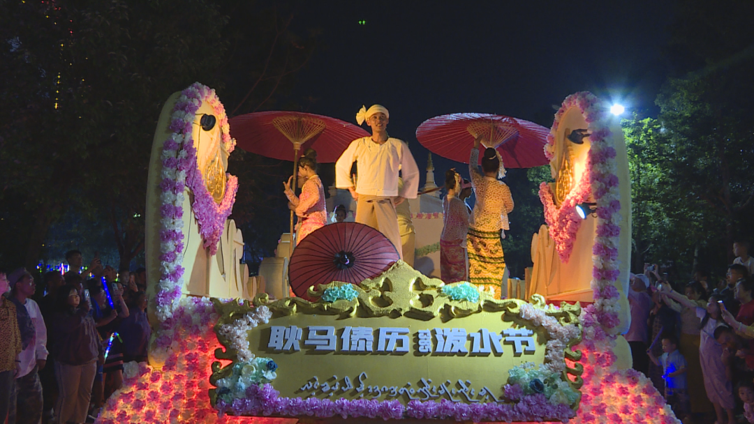 一輛載有獨具傣族特色白塔的花車,在兩只孔雀簇擁下緩緩沿著道路前行。花車上,傣族姑娘和小伙子們身著傣族盛裝,盡情展現(xiàn)著民族舞姿?;ㄜ嚭?,孔雀舞、嘎秧舞、白象舞等非遺舞蹈方隊邊走邊舞,中外游客紛紛拍照留念。這是傣歷潑水節(jié)慶?;顒悠陂g,耿馬傣族佤族自治縣舉辦非遺元素花車夜間巡游時的一個場景,也是臨滄市“建好沿邊文化基地,助推邊境文旅融合”取得成效的一個縮影。