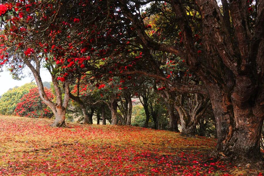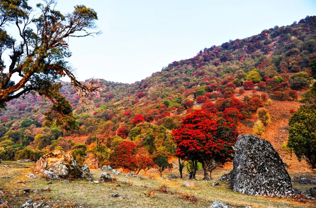 每年2月中旬到5月中下旬,豚鹿坡上萬畝連片杜鵑林似一團團彩云隨心翻滾,一團團、一片片,在風(fēng)中搖曳生姿,構(gòu)成起伏跌宕、前呼后擁的花潮,如彩云霓裳、似錦緞霞披,在綠樹環(huán)抱的大山間盡顯嫵媚妖嬈,美得令人陶醉,令人震撼。