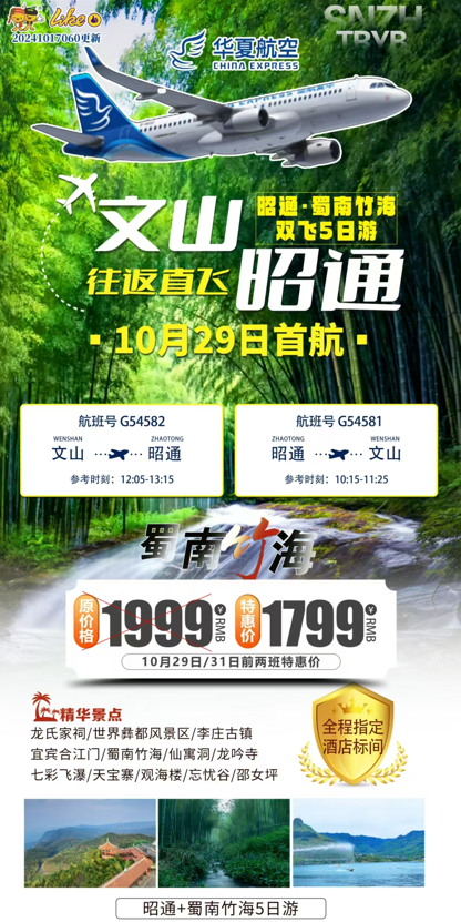 10月29日!文山?昭通首航往返機(jī)票300元起