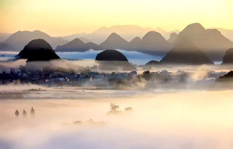 普者黑被譽(yù)為“天邊夢境,人間瑤池”,這里312座孤峰星羅棋布,83個(gè)溶洞千姿百態(tài)。別說普者黑只有夏天的荷塘月色,冬天的它才是隱藏款神仙美景,水杉林紅得像燃燒的晚霞,倒映在清得能數(shù)魚的湖面上,乘船劃過蘆葦蕩,白鷺撲棱棱從水面飛起,云霧繚繞時(shí),整座山都像加了濾鏡的水墨畫。